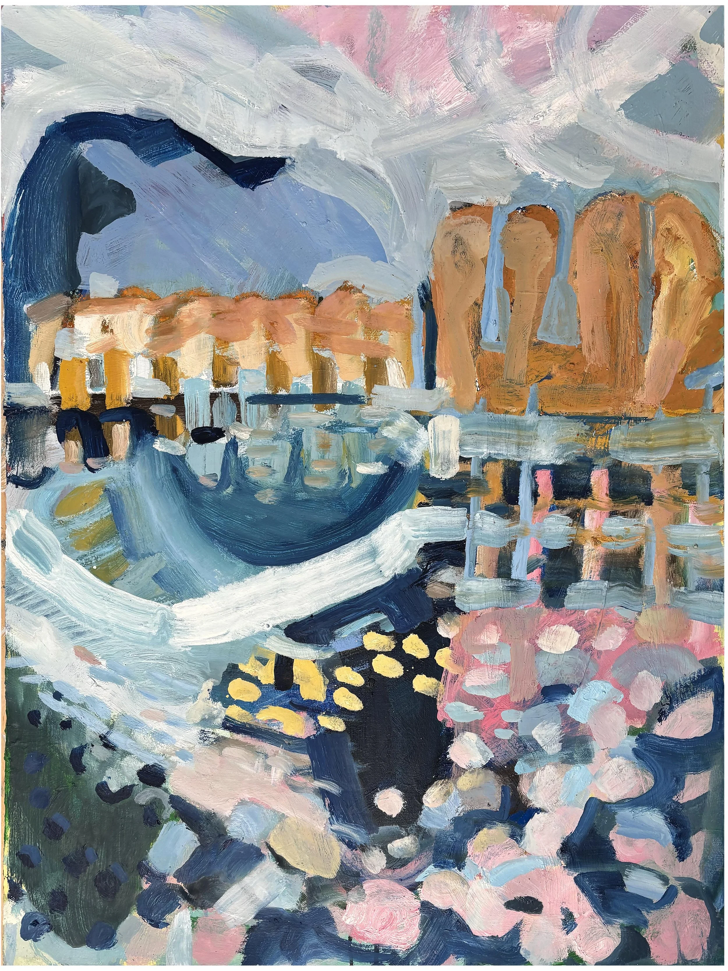 Big Cloud, Pink Road, oil on plytab, 5' x 6'