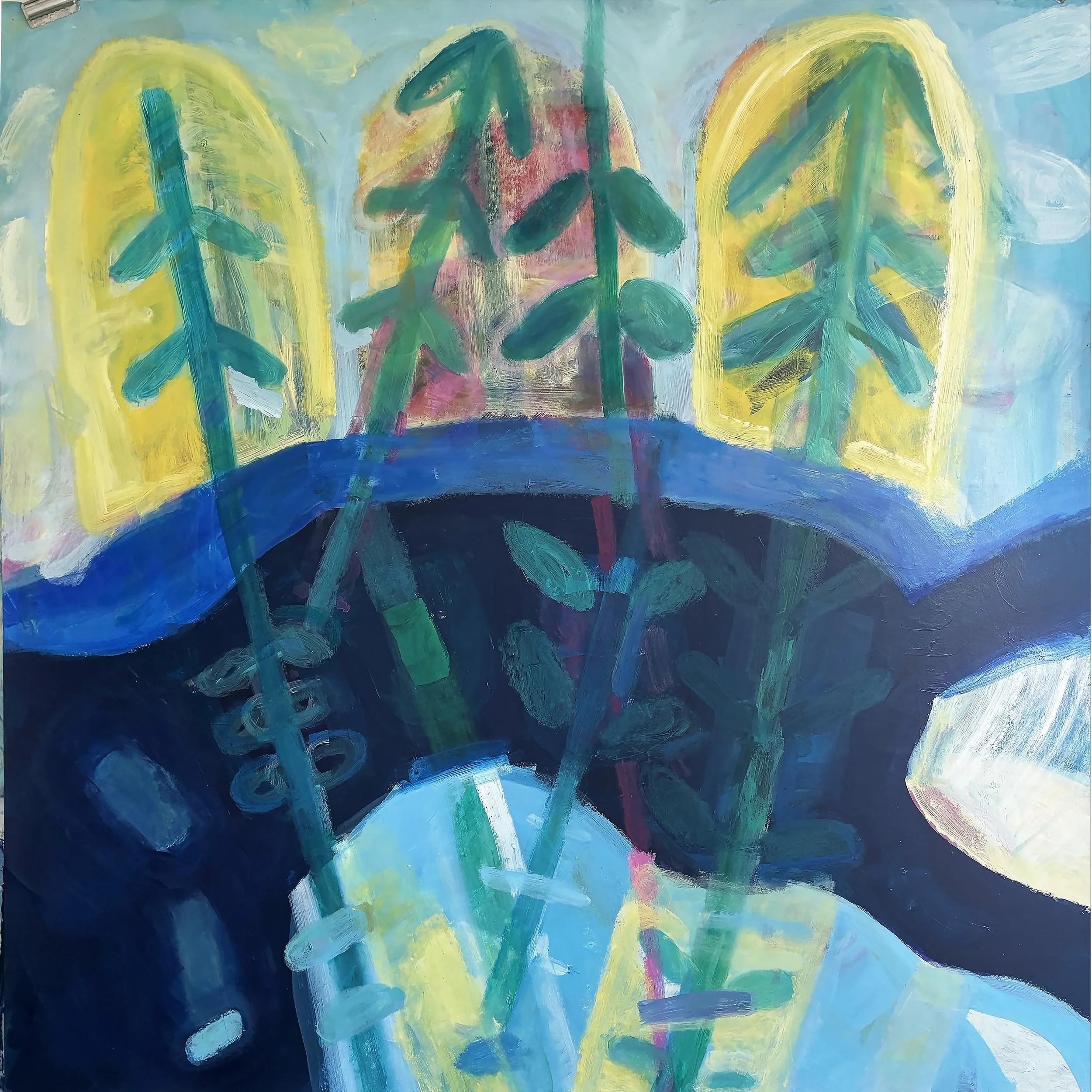 Not the farmer's meadow, oil on polytab, appx 4' x 5'